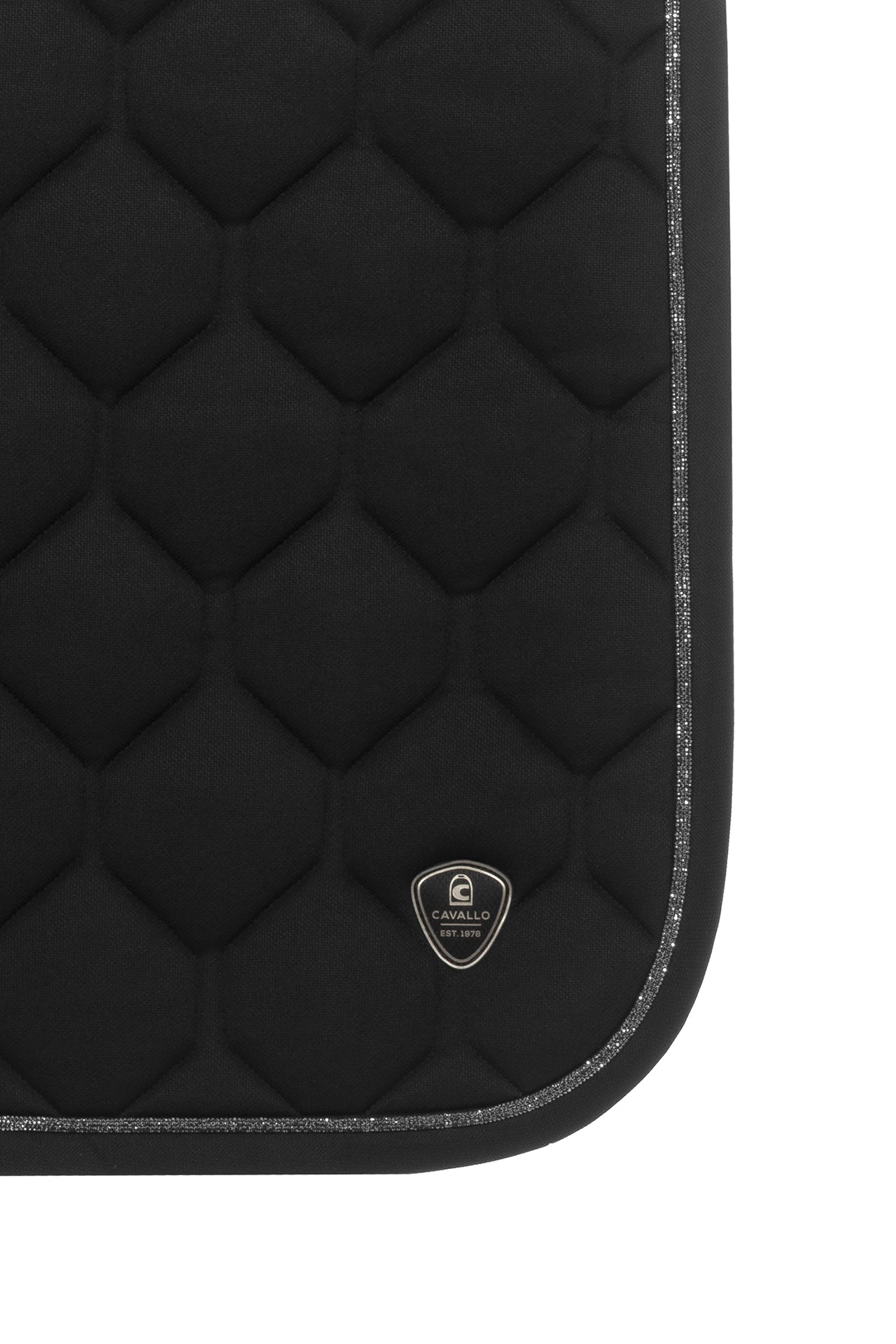 • An elaborate crystal band frames the saddle pad