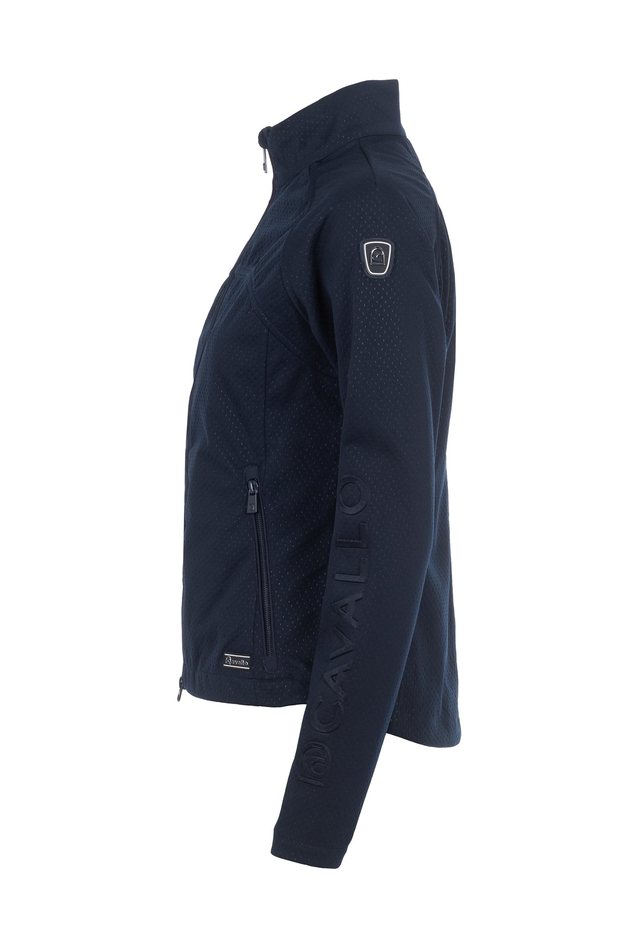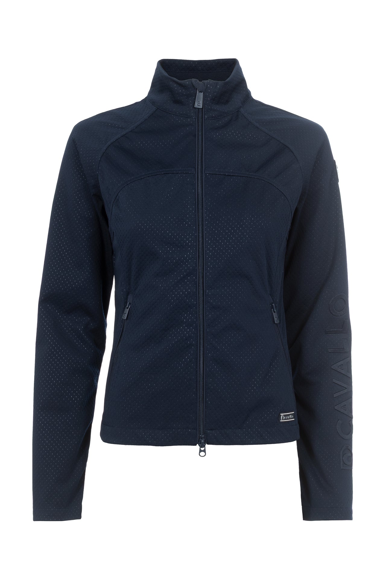 - 2-way front zip and two zip pockets with Cavallo stirrup pendants in dark blue